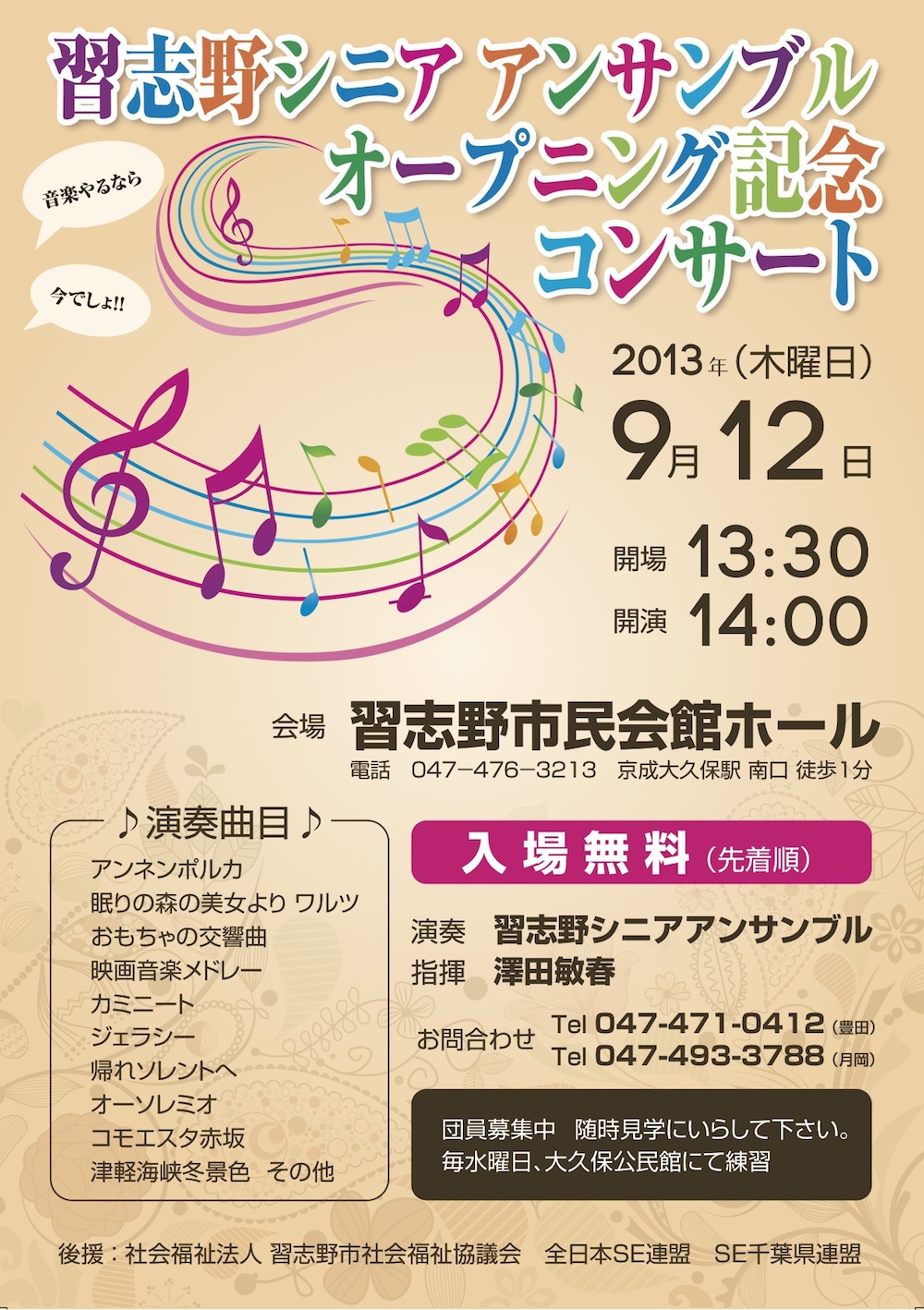 2013年9月12日(木) 習志野シニアアンサンブル オープニングコンサート