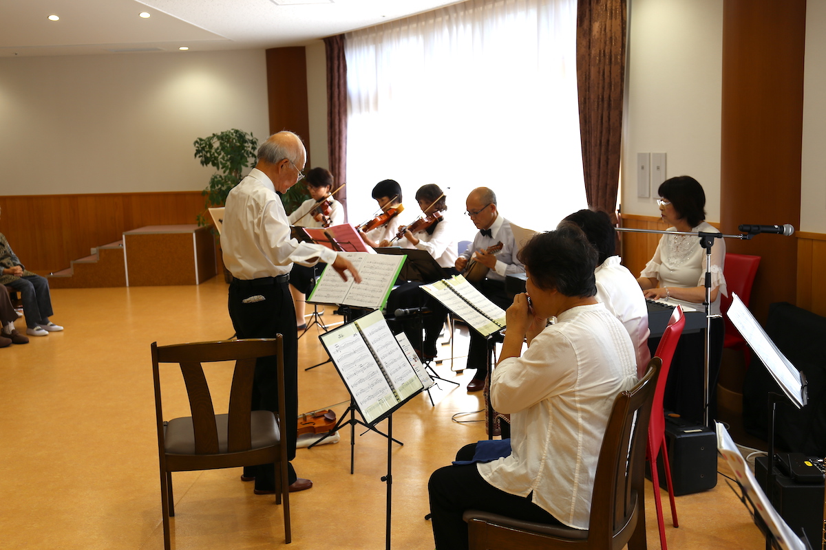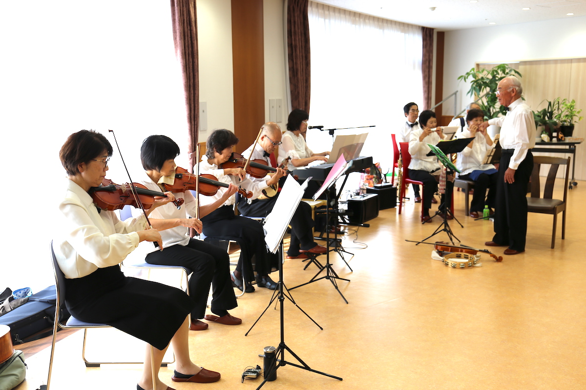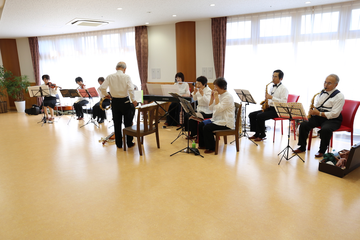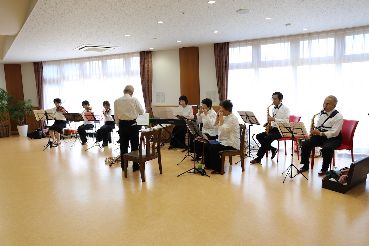 10月6日(土)、下妻市愛宕園にて、下妻シニア・アンサンブルが初めての演奏活動を行いました。 アンコールも含め10曲演奏しました。 高齢の入居者なので、喜んでいただけるのか、楽しんでいただけるのか心配でしたが、皆さんとても反応がよく、ノリノリで演奏できました。 園の方々も協力的で感じの良い方ばかりでした。 本当にありがとうございました。