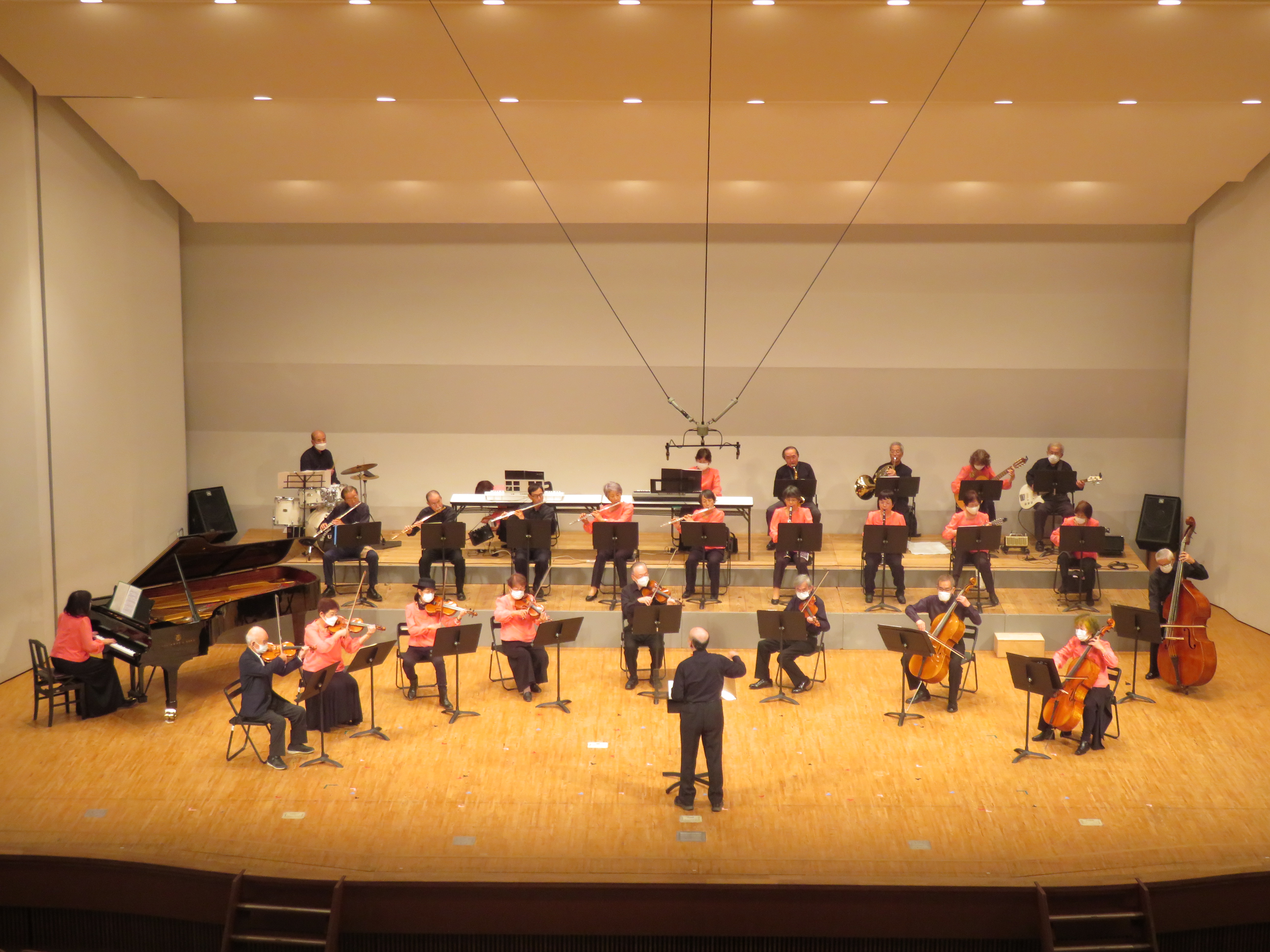 青空を突き抜ける秋晴れの10月23日(日)第46回牛久市民文化祭の一環<シビックコンサート>に出演しました。 会場は牛久市中央生涯センター文化ホール。 菅 新先生の指揮により指定時間15分で3曲<G線上のアリア・ふるさと・サントワマミー>を熱演しました。 ・・・田淵・・・