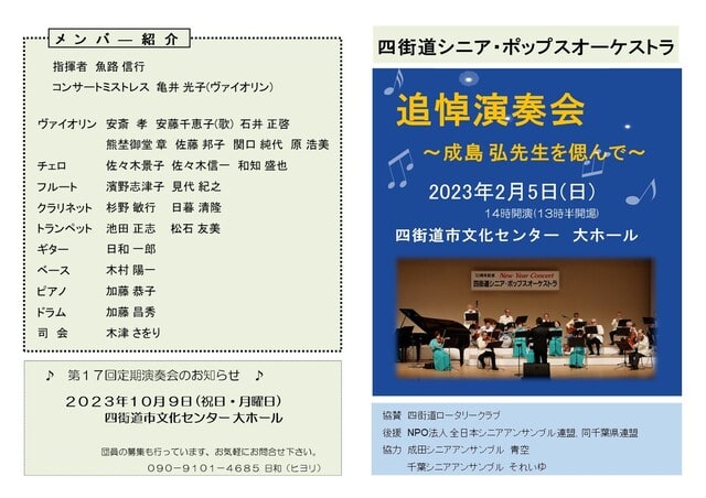 四街道シニアポップスオーケストラ 追悼演奏会開催