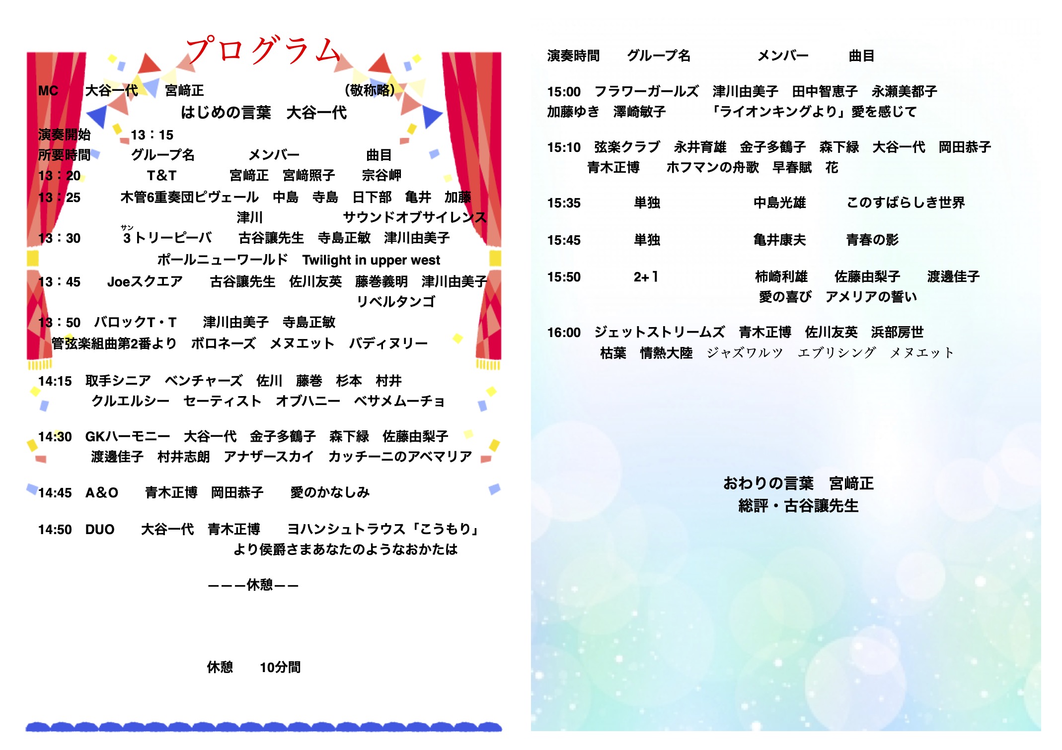 間違いもありやり直しして演奏もありましたが、皆様前向きの間違いで積極的に演奏されました。素晴らしかったです。